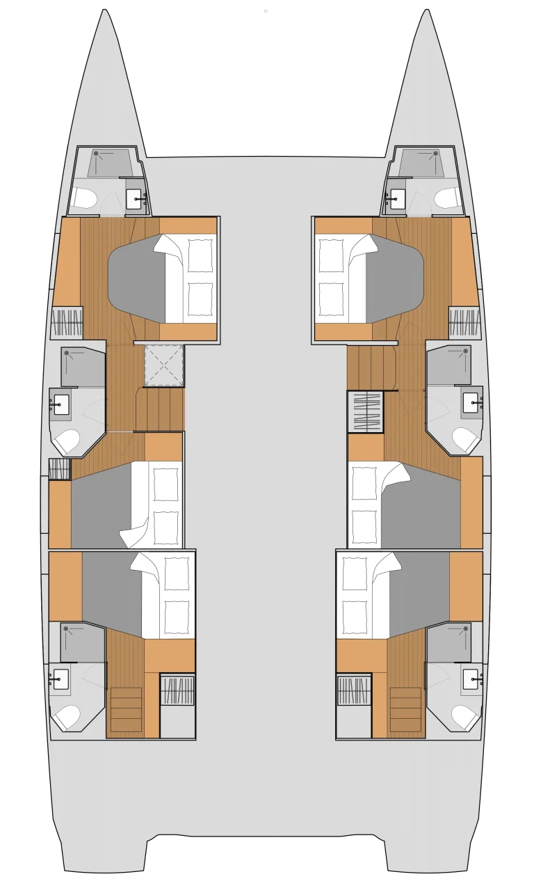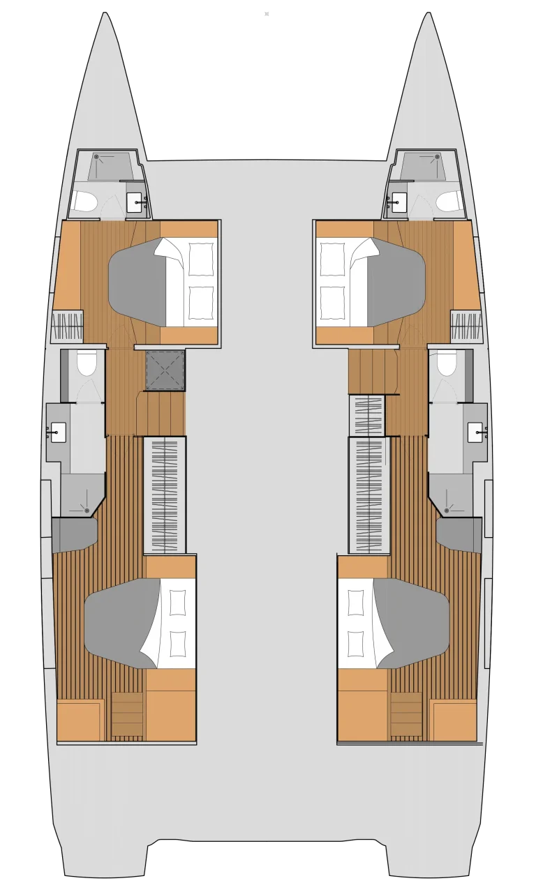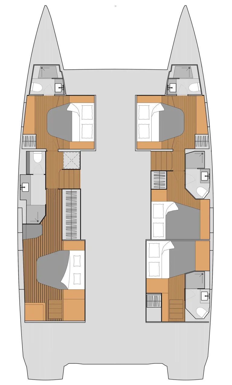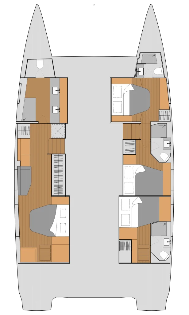 2 Owners Suites + 2 Heads / 2 Double Cabins + 2 Heads