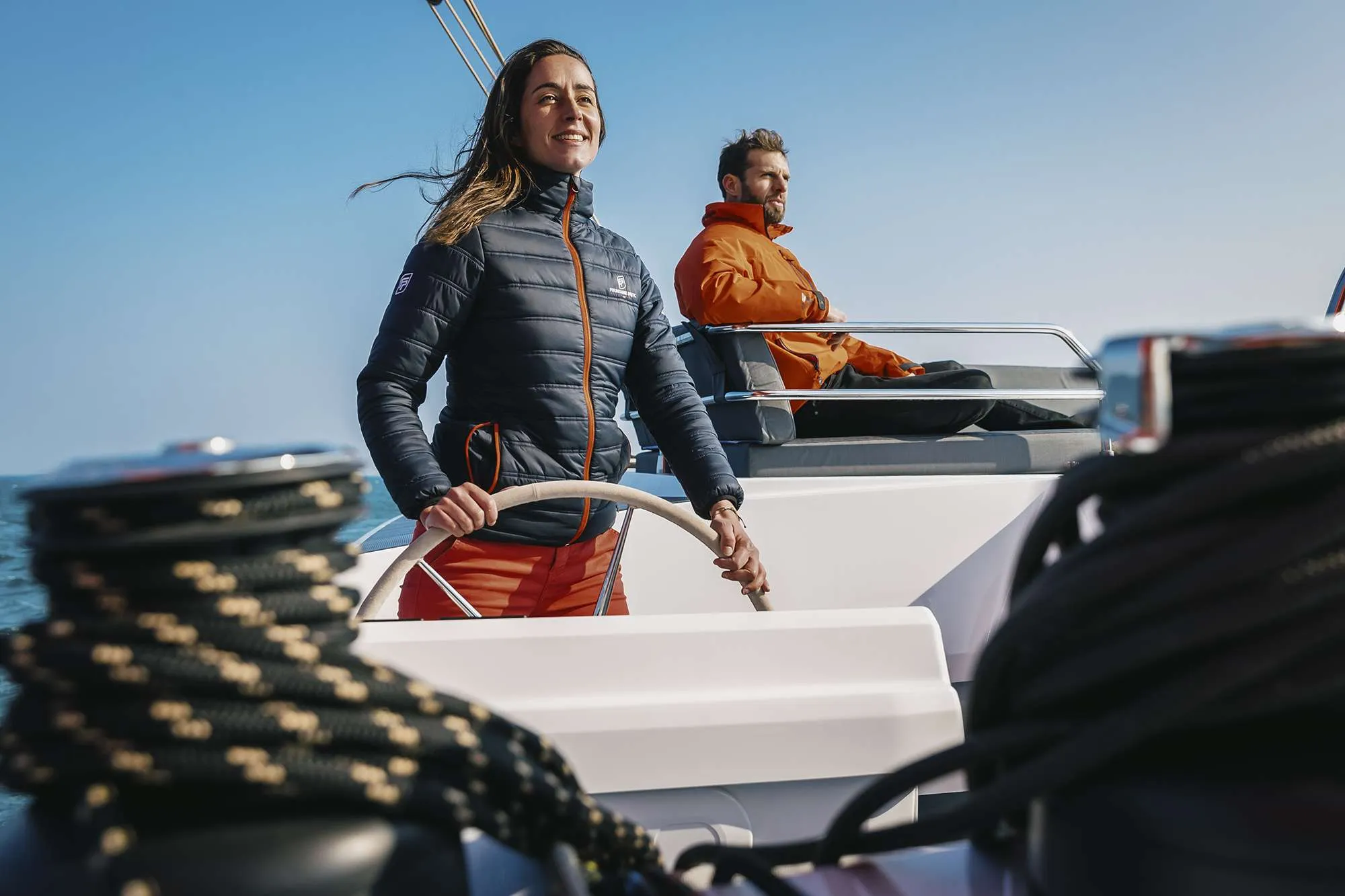 Its large flybridge, equipped with a lounge and sunbathing area, is fitted with solar panels that are capable of producing 2000 watts of renewable energy. This successful gamble allows the Aura 51 to generate 5 times more solar energy than other yachts equipped with solar panels.